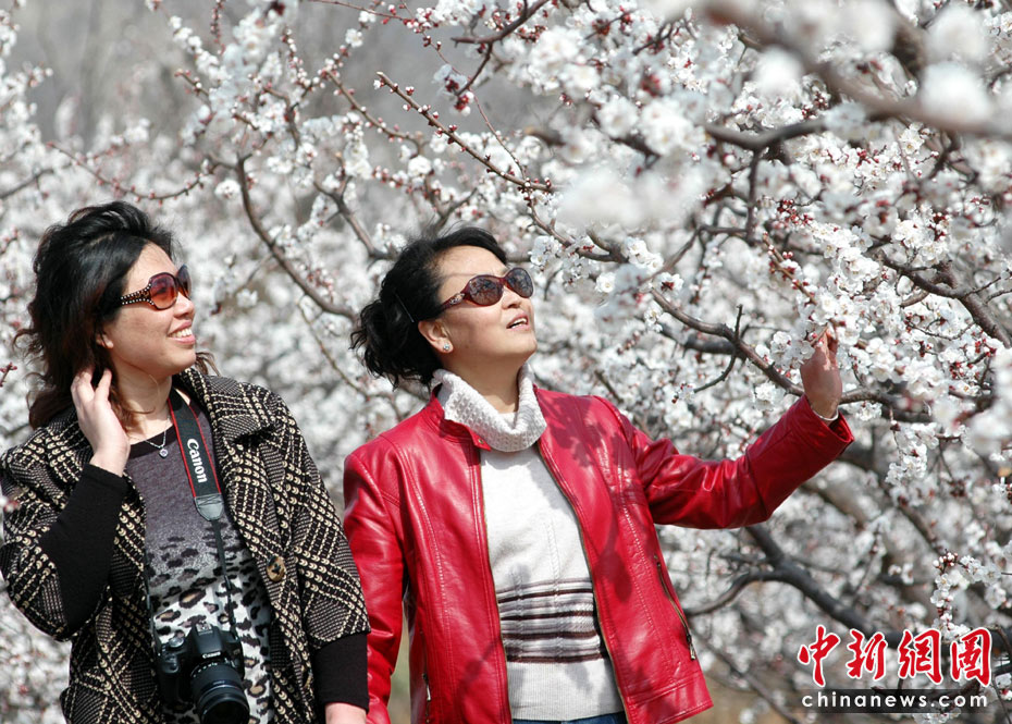 4月3日,山東鄒平縣萬(wàn)畝杏園內(nèi)鮮花怒放,爭(zhēng)奇斗艷,正在進(jìn)行的杏花節(jié)觀花活動(dòng)吸引了當(dāng)?shù)丶爸苓叧汕先f(wàn)的攝影愛(ài)好者和游客紛紛前來(lái)拍照游玩,賞花踏青。中新社發(fā) 董乃德 攝