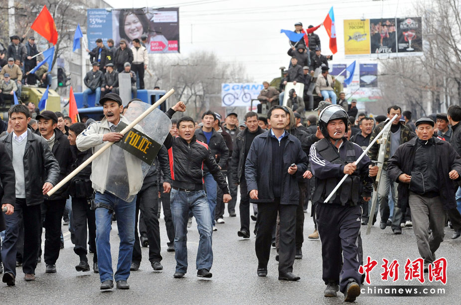 4月7日,吉爾吉斯斯坦發(fā)生騷亂,總理烏謝諾夫宣布在全國范圍內(nèi)實行緊急狀態(tài)。圖片來源:中國新聞網(wǎng)