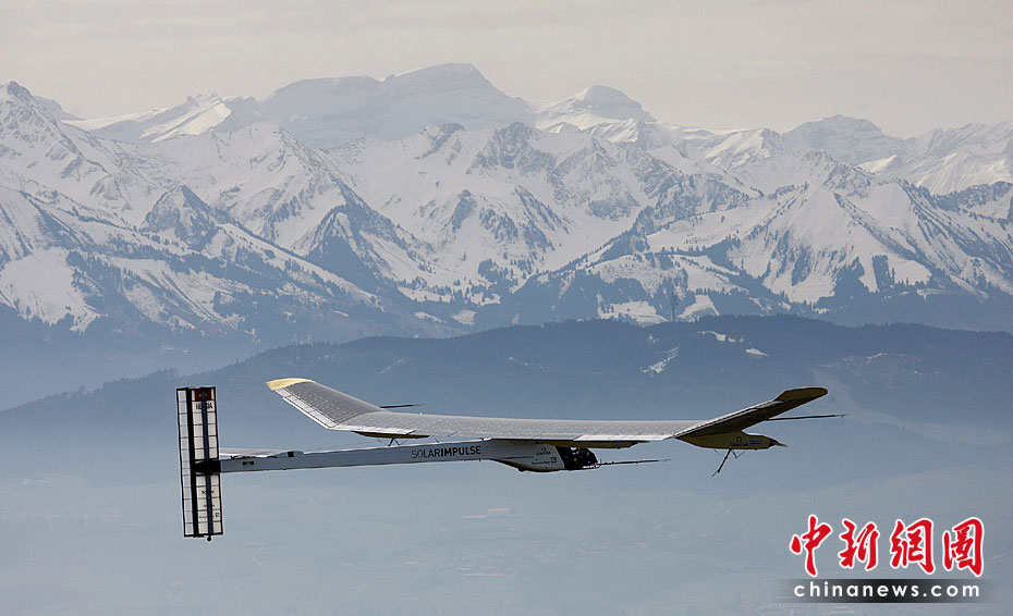 當(dāng)?shù)貢r間4月7日上午,全球首架依靠太陽能驅(qū)動的飛機進(jìn)行首次試飛,預(yù)計此種新型飛機將在2011年實現(xiàn)環(huán)球航行。圖片來源:中國新聞網(wǎng)