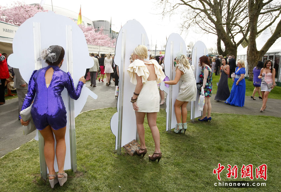 4月9日,英國(guó)安特里,女士們盛裝出席安特里賽馬場(chǎng)女士日活動(dòng)。
