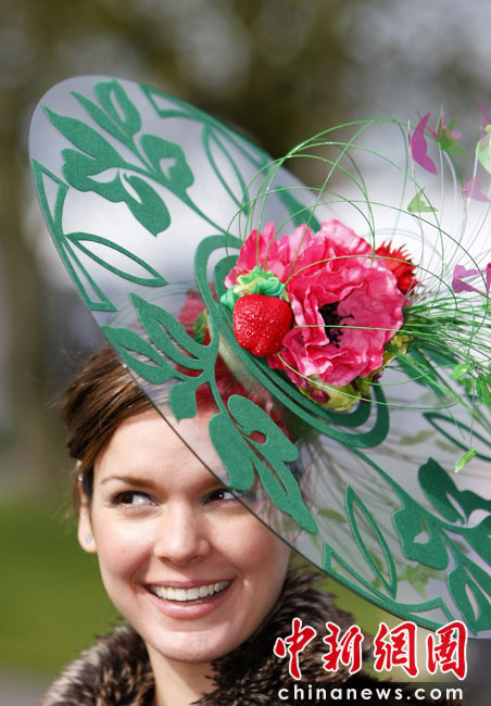 4月9日,英國(guó)安特里,女士們盛裝出席安特里賽馬場(chǎng)女士日活動(dòng)。