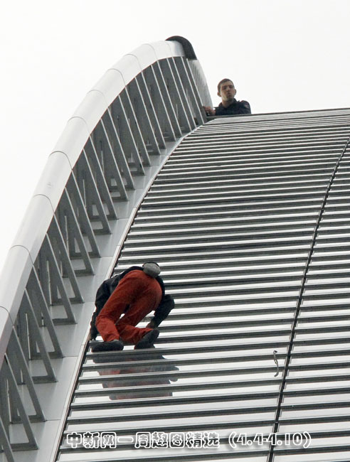 4月7日,巴黎,法國“蜘蛛人”羅伯特當(dāng)日用了大約50分鐘成功攀爬185米高的法國燃?xì)馓K伊士集團(tuán)大樓。圖片來源:中國新聞網(wǎng)>>點(diǎn)擊觀看詳細(xì)內(nèi)容