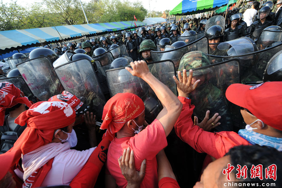 4月10日,泰國軍隊在首都曼谷對支持前總理他信的“紅衫軍”進行武力驅散,雙方爆發(fā)嚴重沖突,目前已造成18人死亡,數(shù)百人受傷。圖片來源:中國新聞網(wǎng)