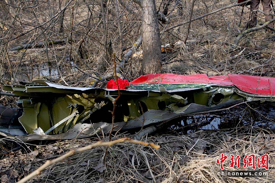 4月11日,波蘭總統(tǒng)卡欽斯基專機(jī)在俄羅斯斯摩棱斯克軍用機(jī)場墜毀地點(diǎn)附近的道路開通,但是警戒線核心區(qū)仍然關(guān)閉。俄波調(diào)查人員正在現(xiàn)場工作。圖片來源:中國新聞網(wǎng)