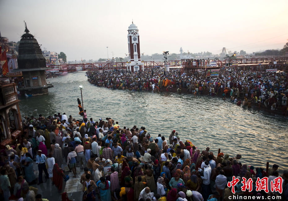 4月13日,印度教傳統(tǒng)節(jié)日“大壺節(jié)”步入尾聲,前來參加盛典的上萬苦行僧赤裸身體涌入恒河,祈求洗清身上的“罪惡”。圖片來源:中國新聞網(wǎng)