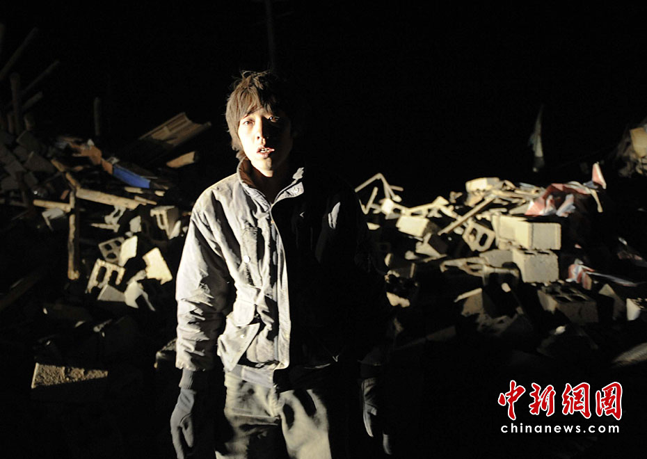 圖為4月15日凌晨1時(shí),青海玉樹地震災(zāi)區(qū)居民摸黑在地震廢墟中尋找親友。中新社發(fā) 廖攀 攝