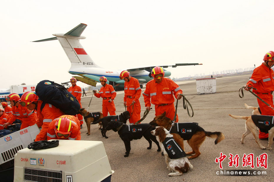 圖為4月14日下午,中國(guó)國(guó)際地震救援隊(duì)攜帶重型搜救設(shè)備搭乘空軍專機(jī)趕赴青海玉樹震區(qū)。中新社發(fā) 譚超 攝