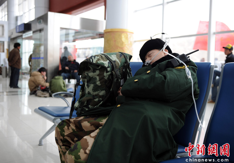 15日青海玉樹(shù)地震救援進(jìn)入第二天,各方救援人員不斷趕來(lái)。由于玉樹(shù)縣海拔高達(dá)4000米,許多外地救援者一時(shí)難以適應(yīng)。記者救援現(xiàn)場(chǎng)了解到,一些救援者出現(xiàn)身體不適,而目前災(zāi)區(qū)又缺乏抗高原反應(yīng)藥物。圖為一位救援人員在玉樹(shù)機(jī)場(chǎng)大廳吸氧。中新社發(fā) 符永康 攝