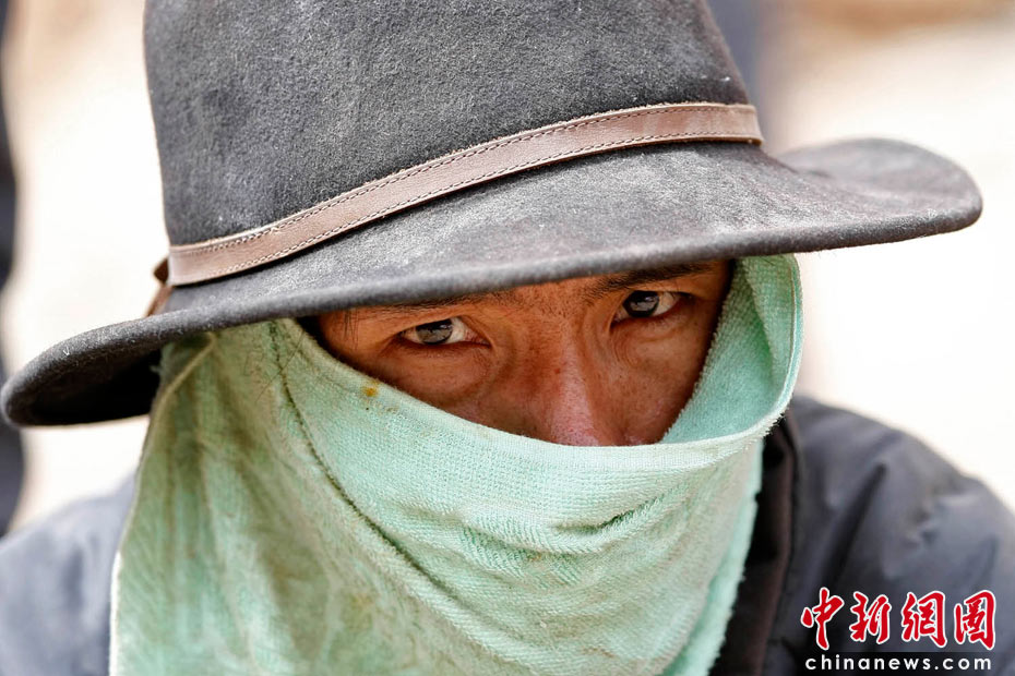 2010年4月16日,青海玉樹(shù)藏族自治州玉樹(shù)縣結(jié)古鎮(zhèn)一所中學(xué)的震災(zāi)救援現(xiàn)場(chǎng),一名救援人員的目光中充滿渴望,期待生命奇跡。中新社發(fā) 盛佳鵬 攝