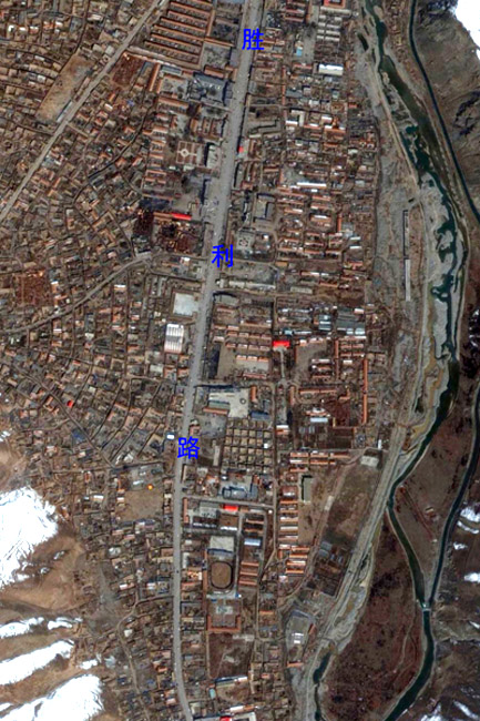 利用對地觀測中心2010年4月16日獲取的高分辨率航空遙感數(shù)據(jù),提取出玉樹州結(jié)古鎮(zhèn)城區(qū)范圍內(nèi)地震破壞最嚴(yán)重或典型地區(qū),使之與GoogleEarth中相應(yīng)位置的震前遙感衛(wèi)星數(shù)據(jù)進(jìn)行對比,直觀展現(xiàn)結(jié)古鎮(zhèn)在此次地震中的受影響程度。圖片來源:中國科學(xué)院