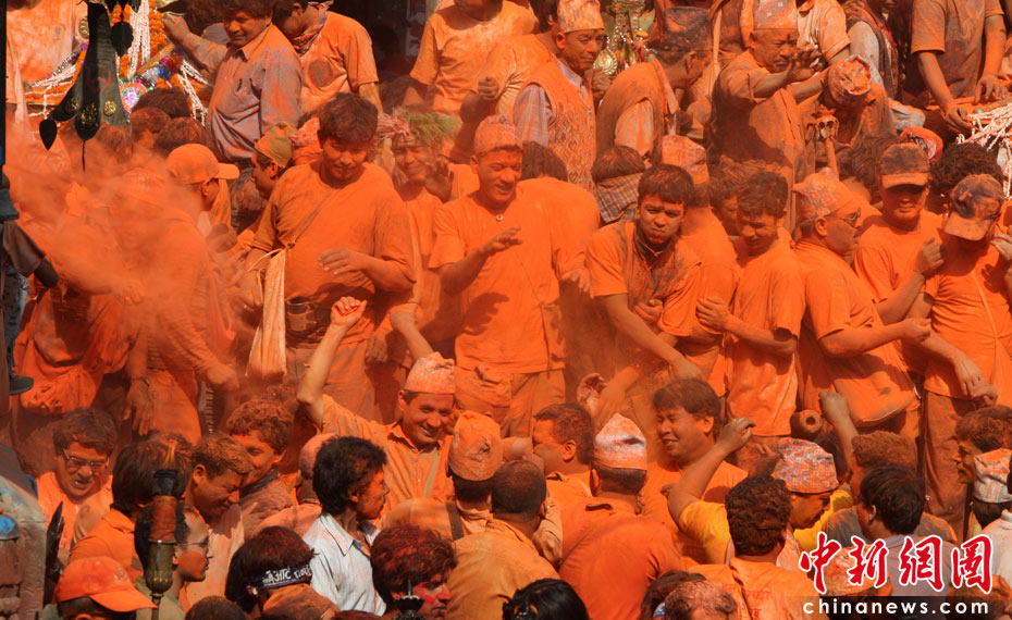 4月15日,尼泊爾迎來一年一度的傳統(tǒng)節(jié)日“尼歷新年”。當(dāng)日全國放假一天,在加德滿都郊區(qū)人們涌上街頭潑灑紅粉慶祝新年。圖片來源:中國新聞網(wǎng)