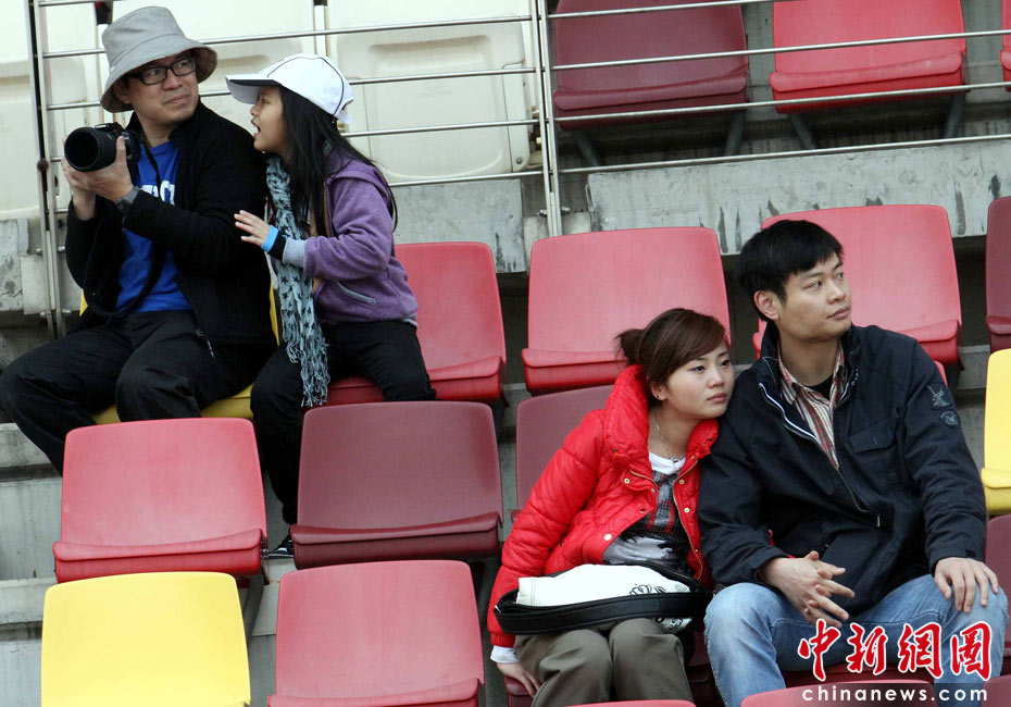 4月16日,2010國(guó)際汽聯(lián)F1世界錦標(biāo)賽上海站在上海國(guó)際賽車場(chǎng)開始車手第一、第二次練習(xí)賽。到場(chǎng)觀戰(zhàn)的中國(guó)觀眾既有情侶也有父女。中新社記者 任晨鳴 攝