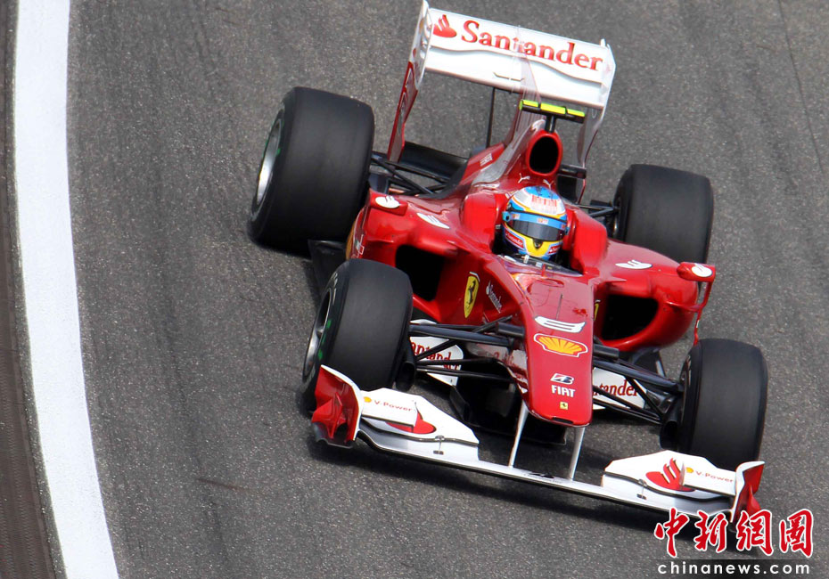 4月17日下午,2010國際汽聯(lián)F1世界錦標賽上海站在上海國際賽車場舉行排位賽,代表紅牛車隊出戰(zhàn)的德國車手維特爾獲得桿位,隊友、澳大利亞車手韋伯獲得第二名,法拉利車隊的西班牙車手阿隆索獲得第三名。中新社記者 任晨鳴 攝