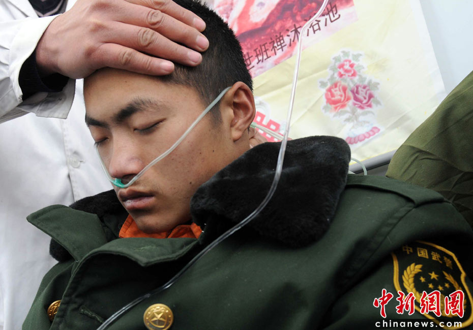 4月18日清晨,玉樹昨夜寒風(fēng)冰雹使地震災(zāi)區(qū)雪上加霜。部分救援人員出現(xiàn)嚴(yán)重高原反應(yīng),準(zhǔn)備搭乘中國空軍重型運(yùn)輸機(jī)撤回“天府之國”成都。中新社發(fā) 賈國榮 攝