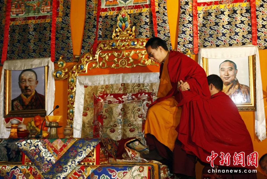 4月20日上午9時(shí)許,十一世班禪額爾德尼·確吉杰布在北京西黃寺,為青海玉樹地震遇難同胞舉行超度法會(huì)。中新社發(fā) 杜洋 攝