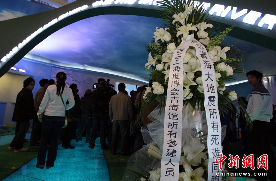 4月21日10點,上海世博青海館舉行儀式哀悼玉樹地震遇難者。當日,全國舉行哀悼活動,深切哀悼青海玉樹地震遇難同胞。中新社發(fā) 湯彥俊 攝