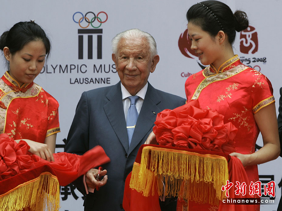圖為2007年6月24日,薩馬蘭奇在北京為第13屆世界奧林匹克收藏博覽會(huì)開幕剪彩。