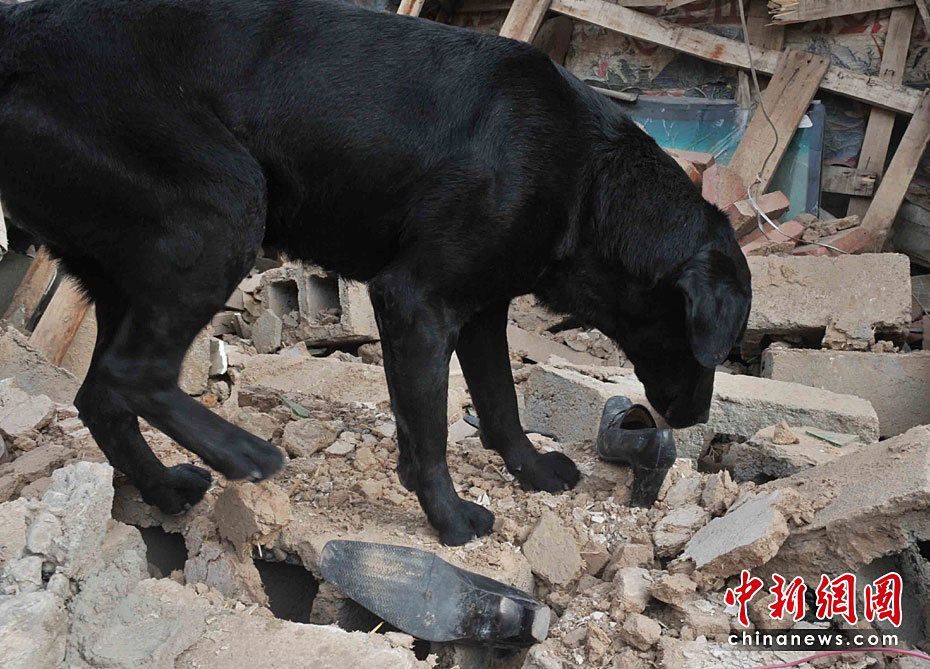 名貴的黑貝犬是中國國家救援隊(duì)趕赴青海玉樹地震災(zāi)區(qū)6只搜救犬隊(duì)成員之一,身價(jià)近百萬元人民幣。4月21日清晨八時(shí)許,它在救援隊(duì)員的帶領(lǐng)下,到玉樹地震災(zāi)區(qū)中心商業(yè)街廢墟里,四處奔波,盡職盡力尋找生命跡象。10時(shí)后,他和救援隊(duì)員都出現(xiàn)高原反應(yīng),暫時(shí)休整,準(zhǔn)備再戰(zhàn)。賈國榮 攝