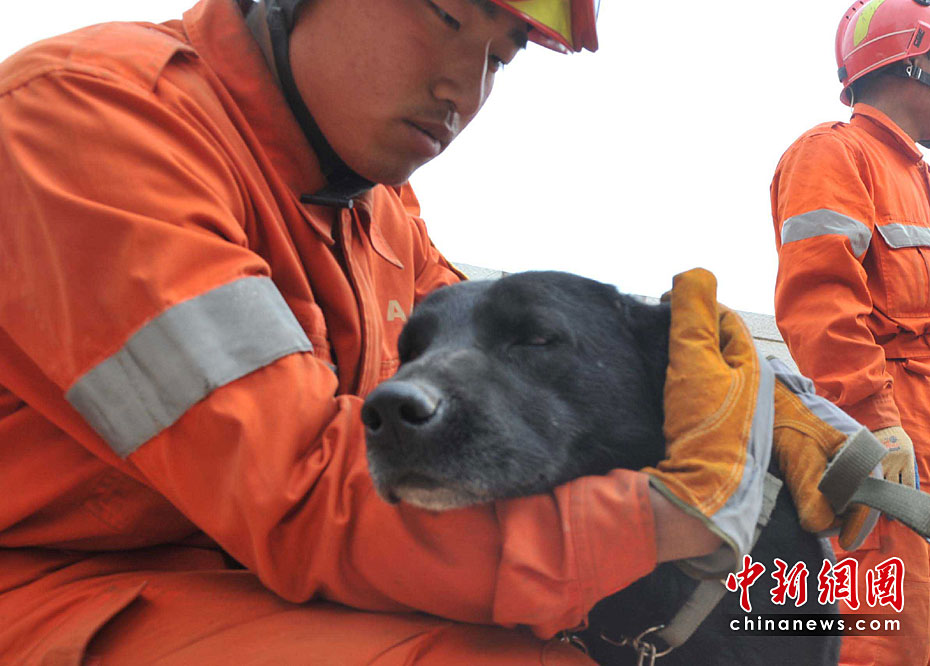 名貴的黑貝犬是中國國家救援隊趕赴青海玉樹地震災(zāi)區(qū)6只搜救犬隊成員之一,身價近百萬元人民幣。4月21日清晨八時許,它在救援隊員的帶領(lǐng)下,到玉樹地震災(zāi)區(qū)中心商業(yè)街廢墟里,四處奔波,盡職盡力尋找生命跡象。10時后,他和救援隊員都出現(xiàn)高原反應(yīng),暫時休整,準備再戰(zhàn)。賈國榮 攝