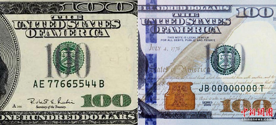 4月21日,美國財政部和美聯(lián)儲共同發(fā)布新版100美元面值的紙幣票樣。此次發(fā)行新版百元美鈔旨在防范假鈔,同時,老版美元仍將繼續(xù)流通。圖片來源:中國新聞網(wǎng)