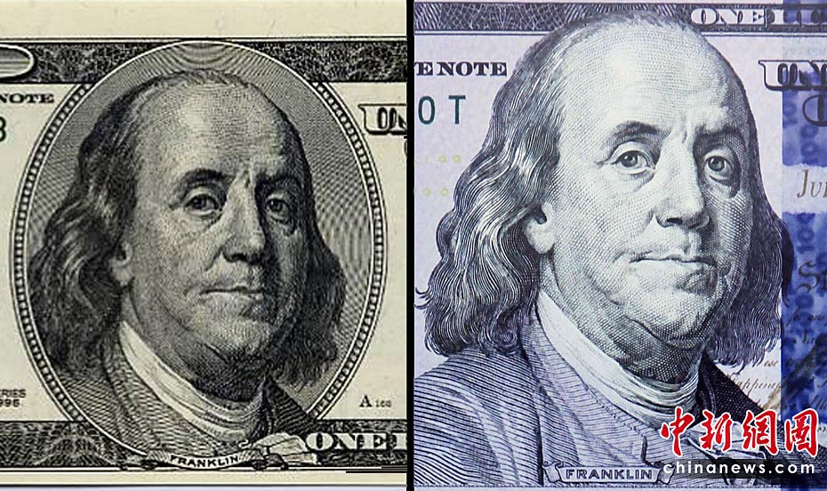 圖為新(右)舊款百元美鈔對比。