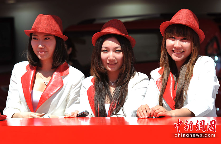 “第十一屆北京國際車展”場內(nèi)車模爭奇斗艷,場外美女不甘示弱。中新網(wǎng)記者 金碩 攝