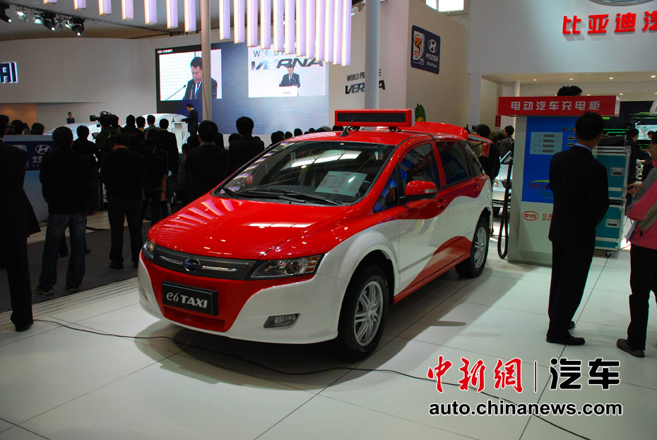 第十一屆北京國(guó)際車展23日開(kāi)幕,在本屆以“暢想綠色未來(lái)”為主題的車展上,新能源車成為最大亮點(diǎn)。圖為比亞迪E6電動(dòng)出租車 王槊 攝