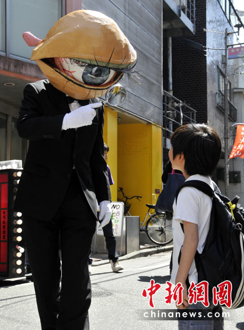 4月26日,日本一個表演藝術(shù)團(tuán)體扮成“獨(dú)眼怪人”在街頭亮相,大玩行為藝術(shù)。