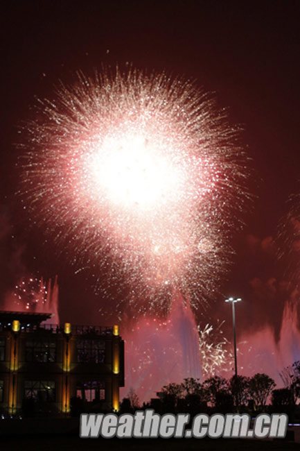 2010年4月27日,上海世博會(huì)開幕式彩排順利進(jìn)行。圖為酷似英國(guó)館的煙花。卞赟 攝