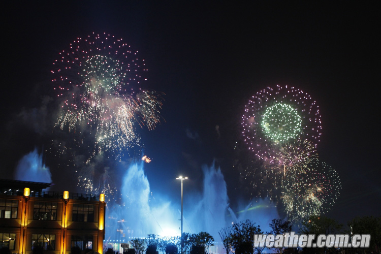 2010年4月27日,上海世博會(huì)開幕式彩排順利進(jìn)行。圖為噴泉與煙花一同表現(xiàn)世博會(huì)主題。卞赟 攝