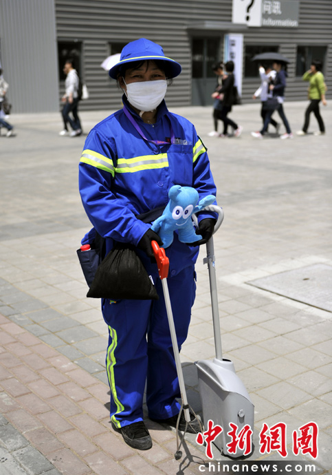 聽說是從北京來的記者,王大姐非常配合地滿足了我們的要求,與海寶照了合影,不過一再說自己不上相,照起來不好看。王大姐告訴記者,在世博園區(qū)里工作是早晚班輪換上的,早班從早上4點到下午2點,晚班從下午2點到夜里12點,工作還是比較辛苦的。“期待世博會能夠圓滿成功!北磉_完對世博會的祝福后,王大姐匆匆離開,回到了工作崗位。