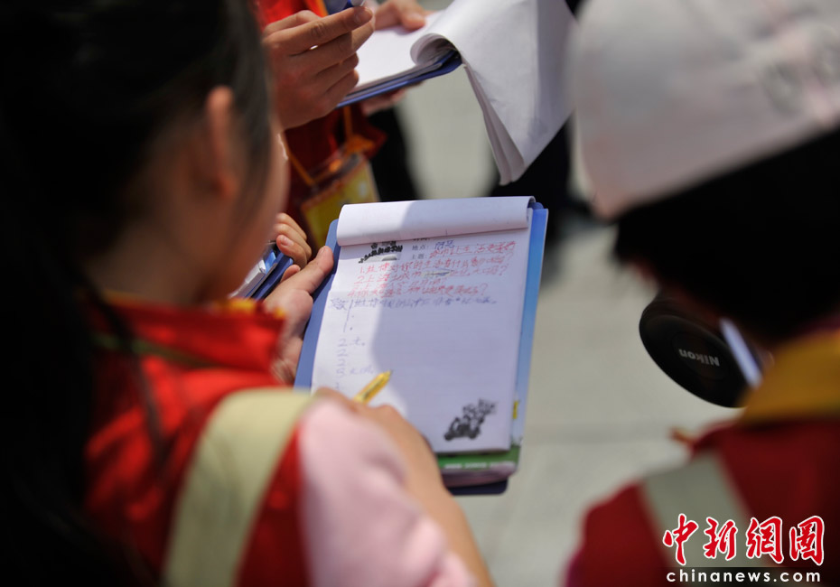 30日上午,記者在上海外灘采訪(fǎng)時(shí)遇到小主人報(bào)新聞學(xué)校的“小記者”們?cè)诓稍L(fǎng),成為他們今天的第一個(gè)采訪(fǎng)對(duì)象!靶∮浾摺眰冏铌P(guān)心的問(wèn)題是關(guān)于世博會(huì),“如何讓世界變得更美好”。她們都表示非常想去看世博會(huì),最想看的是中國(guó)館,但是要留到最后看,“因?yàn)槠渌^都會(huì)拆掉,中國(guó)館會(huì)保留下來(lái)”。“小記者”們說(shuō),自己要從身邊小事做起,做有文明有素質(zhì)的人,并表示希望自己將來(lái)成為真正的“大記者”,更好地報(bào)道上海。吳歆/文 王紅綱/圖