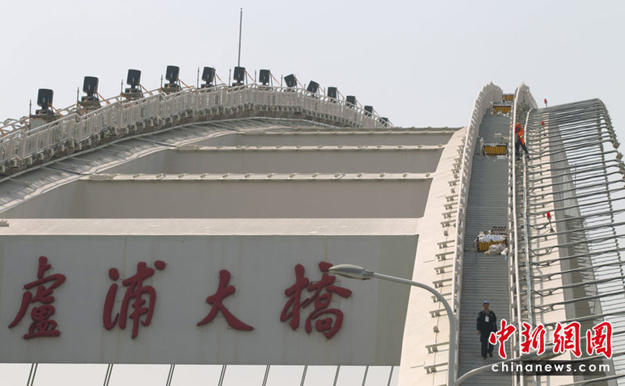 4月30日晚,舉世矚目的上海世博會(huì)開(kāi)幕式將在黃浦江畔世博園區(qū)舉行。圖為世博焰火晚會(huì)盧浦大橋焰火準(zhǔn)備就位。劉行喆 攝