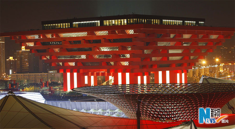 4月30日,中國2010年上海世博會開幕。圖為開幕前夕的中國館亮燈。裴鑫攝