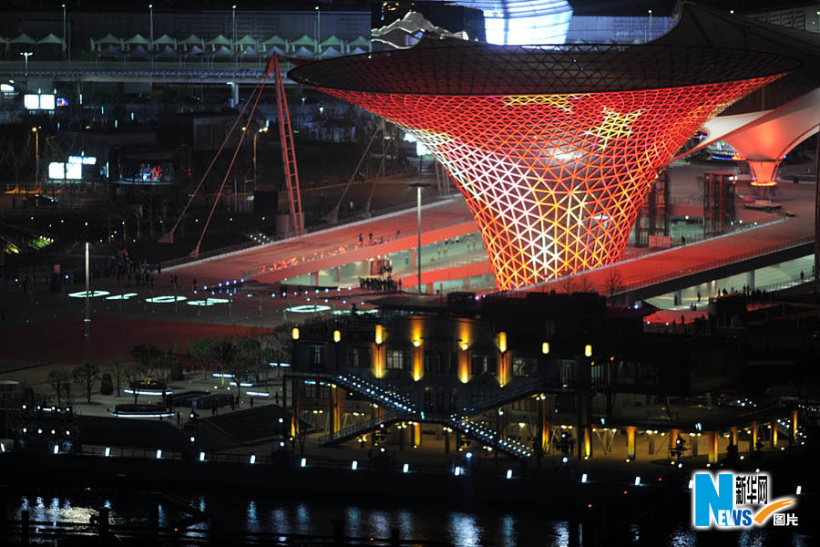 4月30日,中國(guó)2010年上海世博會(huì)開幕。圖為世博軸亮燈。裴鑫攝