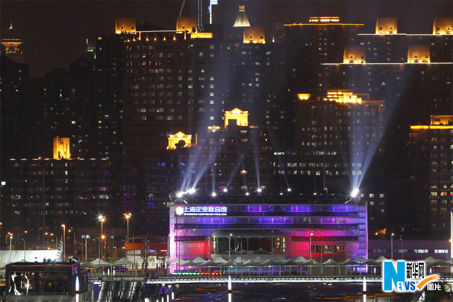 4月30日,中國(guó)2010年上海世博會(huì)開幕。圖為上海企業(yè)聯(lián)合館亮燈。裴鑫攝