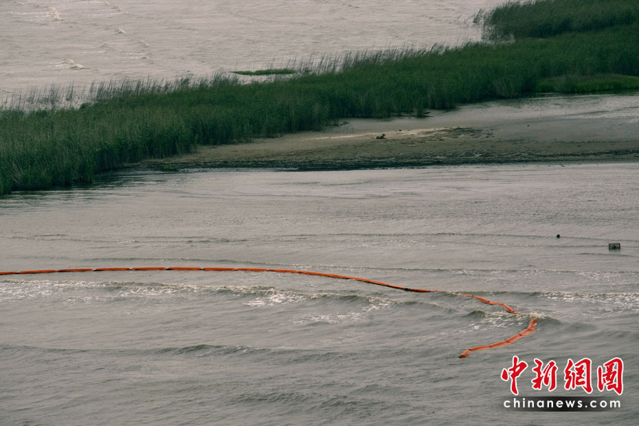 4月30日,在美國路易斯安那州海岸,為阻隔原油擴(kuò)散而設(shè)的護(hù)欄帶被海風(fēng)浪沖到岸邊。當(dāng)天,美國總統(tǒng)奧巴馬下令調(diào)查墨西哥灣石油鉆井平臺爆炸事件,以避免將來類似事件再次發(fā)生。平臺爆炸沉沒后泄漏的原油當(dāng)天已漂至美國沿岸。圖片來源:中國新聞網(wǎng)