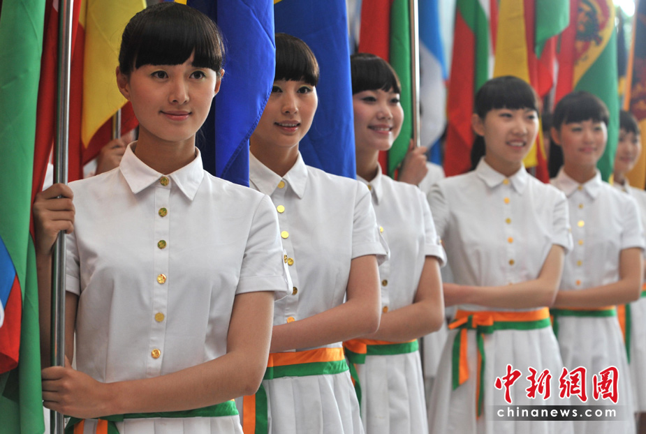 5月1日,2010年上海世博會(huì)正式開(kāi)園,英姿颯爽的女子旗手們參加清晨的儀式。中新社記者 賈國(guó)榮攝