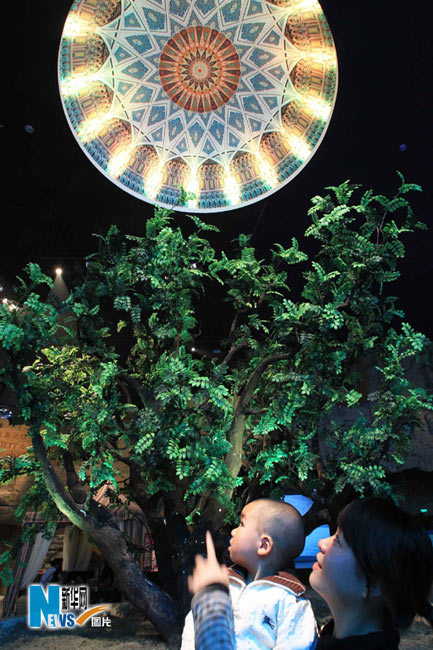 5月1日,上海世博會(huì)正式開園迎客,首批游客入園參觀。圖為游客在阿曼館內(nèi)參觀。 李明放攝
