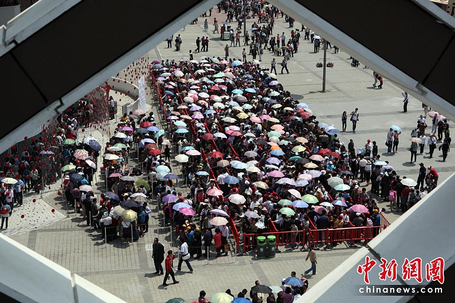 5月1日,2010上海世博園正式開園第一天,參觀者從浦東、浦西10多個(gè)出入口進(jìn)入園區(qū),世博園區(qū)內(nèi)游人如潮。圖片來源:中國新聞網(wǎng)