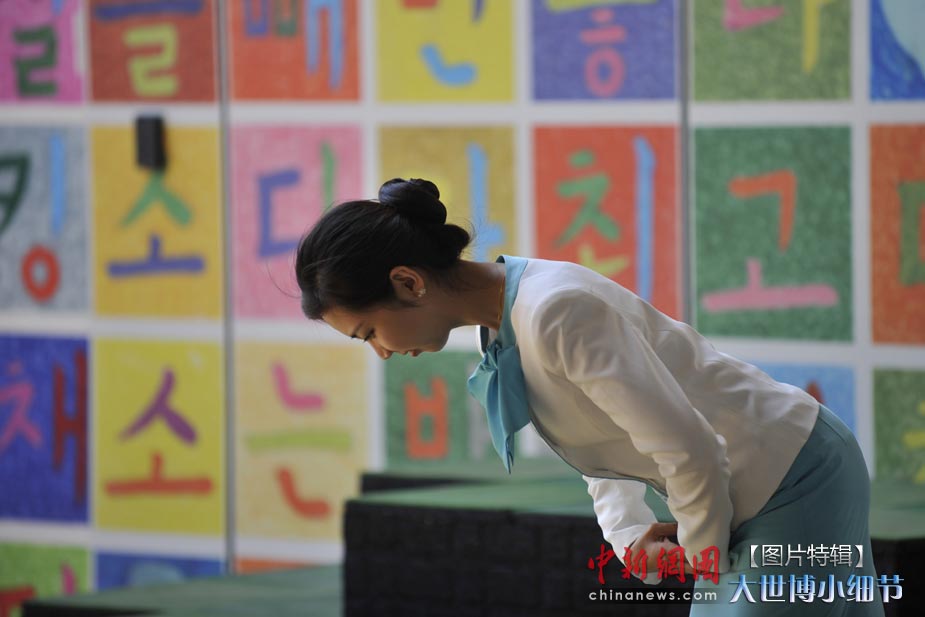 5月1日,上海世博會正式開園,當(dāng)日有20萬人次的游客參觀了世博園。世博首日,許許多多的小細(xì)節(jié)都帶給人一種全新的體驗(yàn)。圖為韓國館禮儀小姐以甜美的笑容面對第一批進(jìn)館的游客。中新網(wǎng)記者 王紅綱 攝