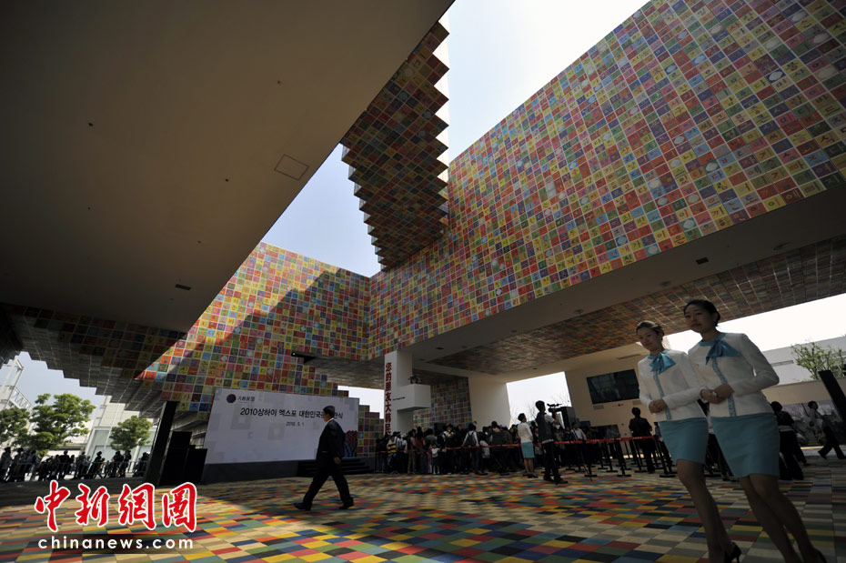 與普通建筑物不同,韓國國家館由于使用韓文字母構(gòu)筑,其底層的絕大部分為開放空間,也就是說沒有門,以充分體現(xiàn)韓國的開放性和包容性。展館底層地面,鋪設(shè)了不同色彩的地磚。據(jù)介紹,色彩斑斕的地面其實(shí)是韓國首都首爾地圖,這張地圖為首爾實(shí)際面積的1/300。濃縮的首爾居然移植到了上海,其嶄新的符號(hào)化空間,為上海與首爾之間的直接交流建立起一個(gè)全新的平臺(tái)。中新網(wǎng)記者 王紅綱 攝