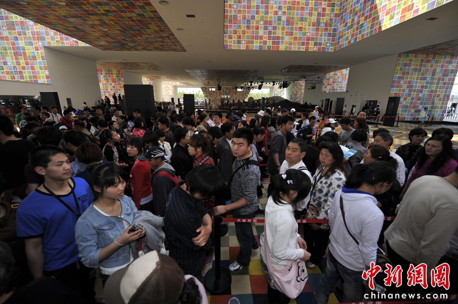 從底層到二層還需要排隊,一定要有耐心。中新網記者 王紅綱 攝