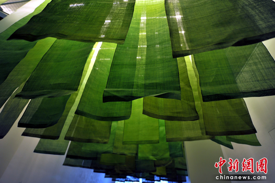用天然染料染的麻布從天花板垂下,給人置身于美麗草原的感覺。中新網(wǎng)記者 王紅綱 攝