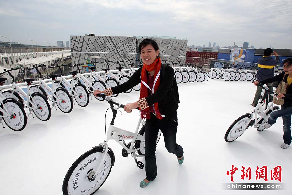 5月2日,上海世博會(huì)是第一個(gè)正式提出“低碳世博”理念的世博會(huì),圍繞著這樣的理念,上海世博園區(qū)內(nèi)的低碳元素比比皆是。圖為游客在丹麥館內(nèi)享受自行車帶來(lái)的樂(lè)趣。中新社發(fā) 湯彥俊 攝