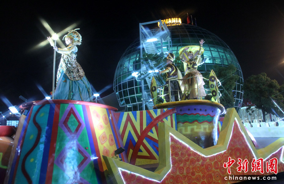 5月2日晚,由一輛輛充滿異域風(fēng)情的花車和身著盛裝的表演者組成的“歡樂盛裝大巡游”在世博園區(qū)舉行。中新網(wǎng)記者 蘇丹 攝