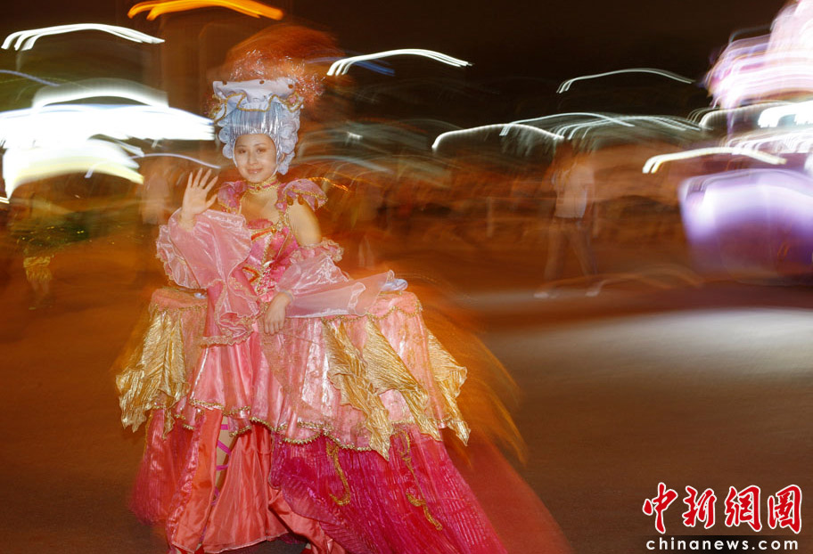 5月2日晚,由一輛輛充滿異域風(fēng)情的花車和身著盛裝的表演者組成的“歡樂盛裝大巡游”在世博園區(qū)舉行。中新網(wǎng)記者 盛佳鵬 攝