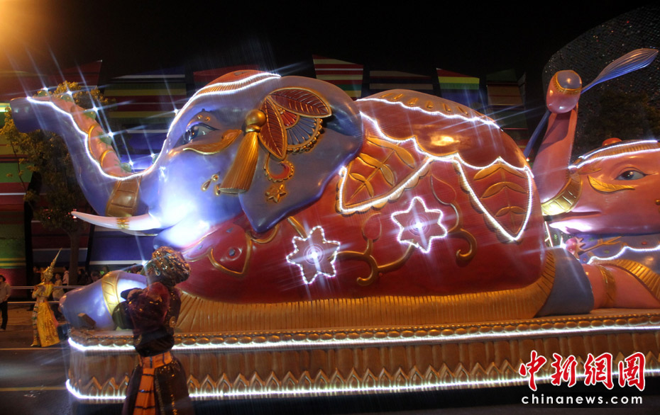 5月2日晚,由一輛輛充滿異域風(fēng)情的花車和身著盛裝的表演者組成的“歡樂盛裝大巡游”在世博園區(qū)舉行。中新網(wǎng)記者 蘇丹 攝