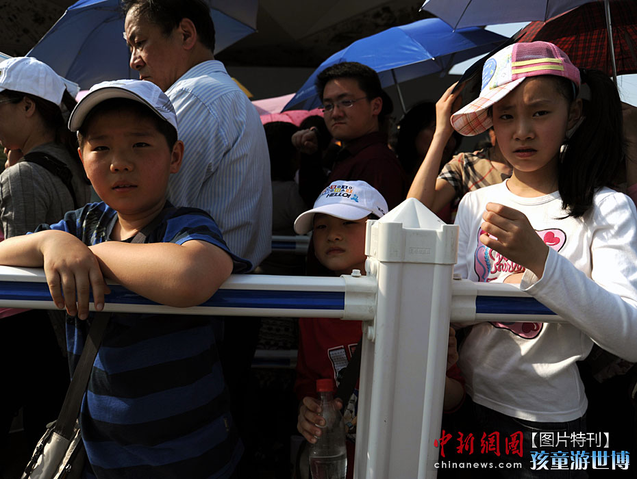 隨著上海世博園正式開園,各大展館迎來了八方游客,其中不乏一些小孩子也來上海感受世博盛況。中新社發(fā) 許康平 攝