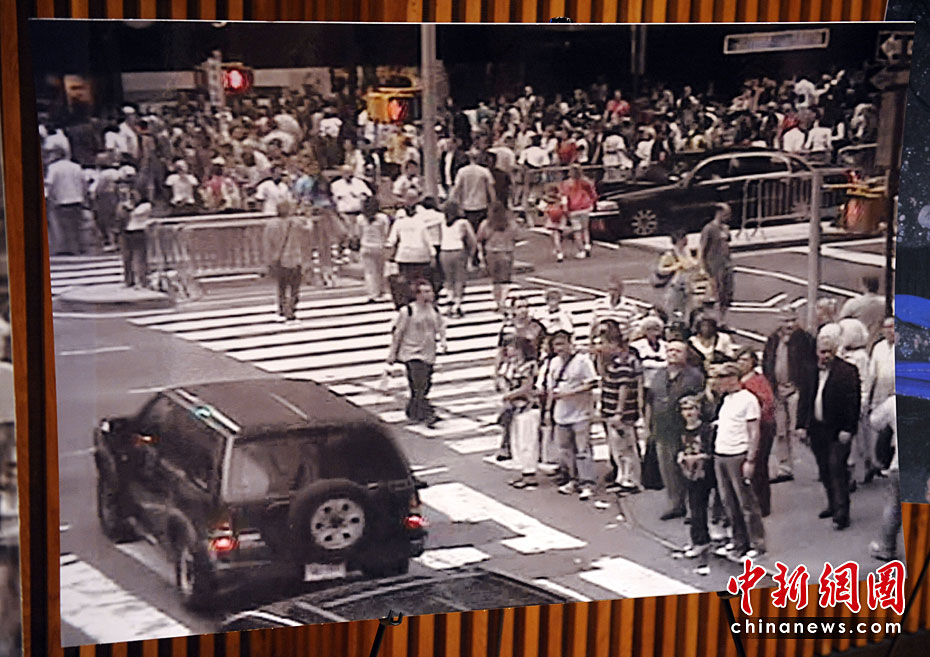 美國當(dāng)?shù)貢r(shí)間5月2日,紐約市警察局長凱利在記者會(huì)上公布了紐約時(shí)代廣場(chǎng)爆炸事件現(xiàn)場(chǎng)照片。同時(shí)他還指出,沒有證據(jù)顯示巴基斯坦塔利班策劃了1日傍晚發(fā)生在紐約時(shí)報(bào)廣場(chǎng)上的未遂汽車炸彈襲擊事件。圖片來源:中國新聞網(wǎng)